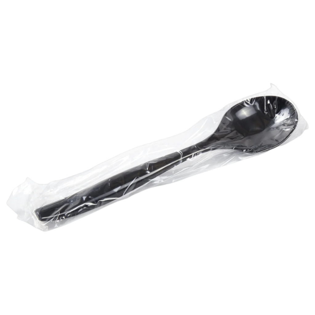 Plastic Serving Spoon Heavy Weight Black, Individually Wrapped [144 Pack]