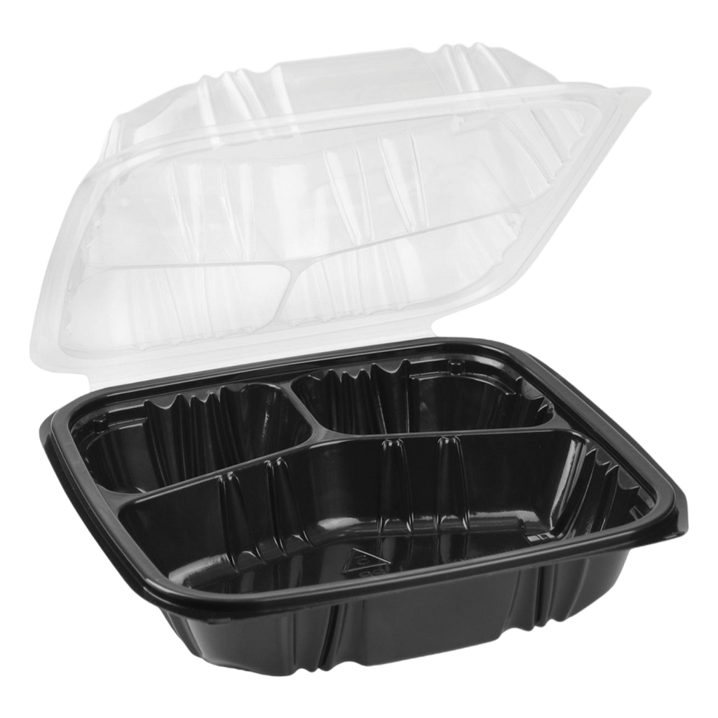 9.5"x 10.5"x 3"- 3 Compartment Dual-Color Microwavable Vented Hinged Lid Container [100/Case]